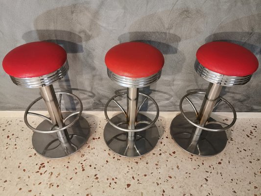 Italian Red Leather Bar Stools 1990s Set Of 3 For Sale At Pamono