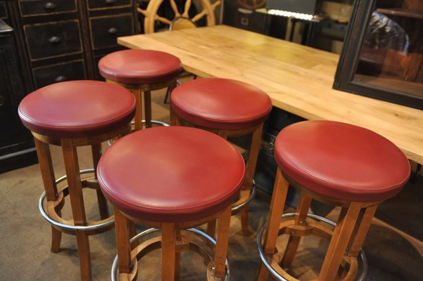 Beech And Red Leather Bar Stool 1950s For Sale At Pamono