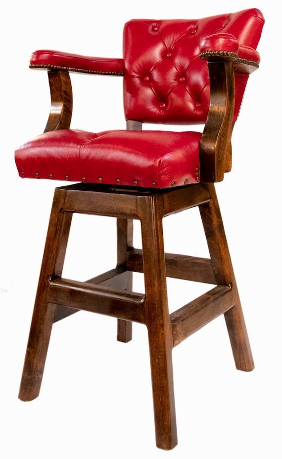 Chisum Red Tufted Barstool Tufted Red Leather Rustic Western Etsy