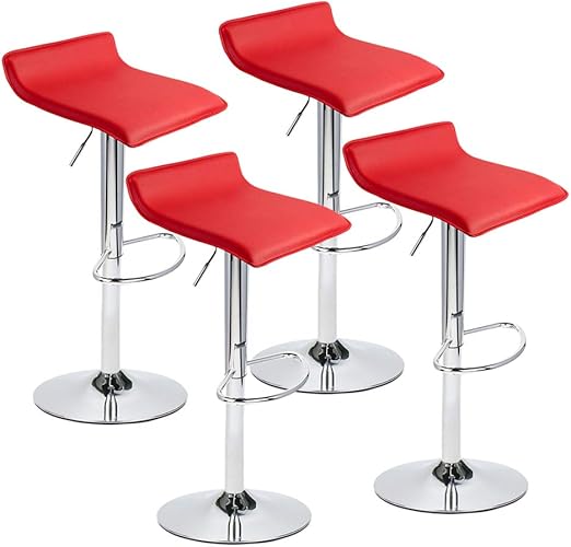 Amazon Com Red Bar Stools Set Of 4 Hydraulic Adjustable Swivel