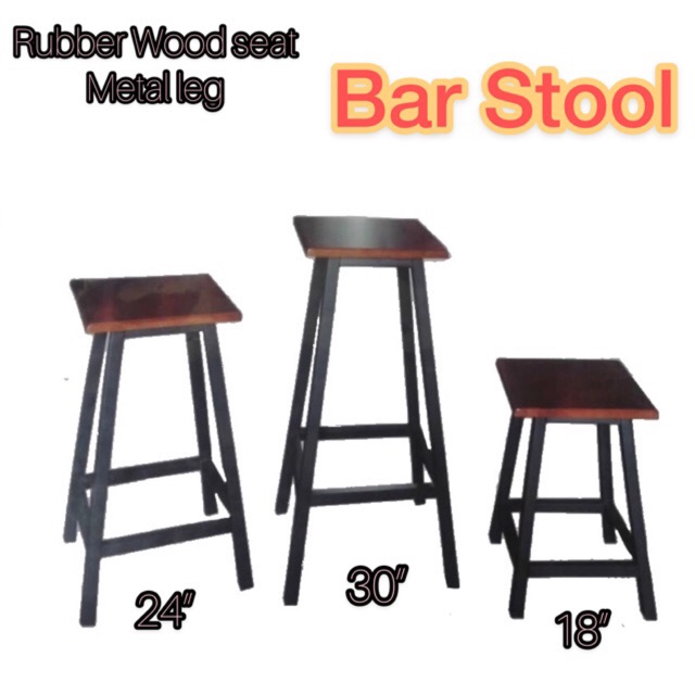 Bar Stool Steel Leg Rubber Wood Seat Shopee Malaysia