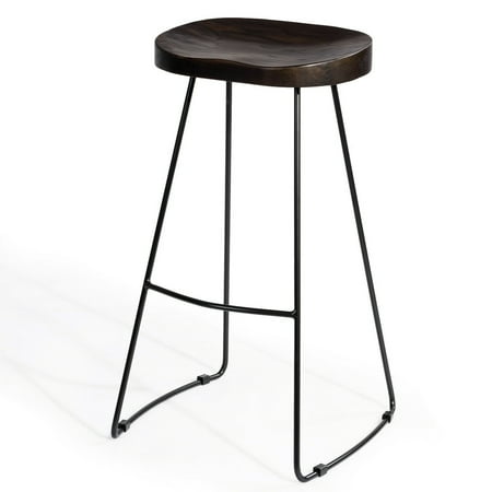 Simpli Home Simeon 30 Inch Metal Bar Stool With Wood Seat