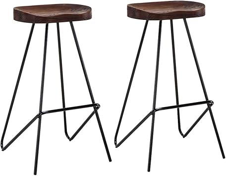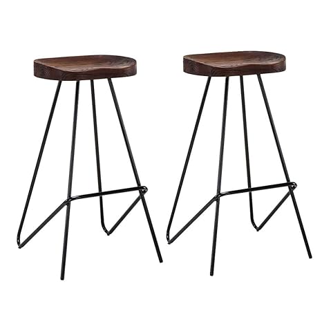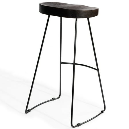 Rustic Dark Light Solid Wood Under Counter Bar Stool Metal