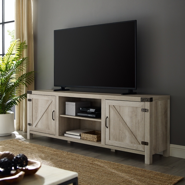 Farmhouse White Distressed Barn Door Media Center Furniture On Main