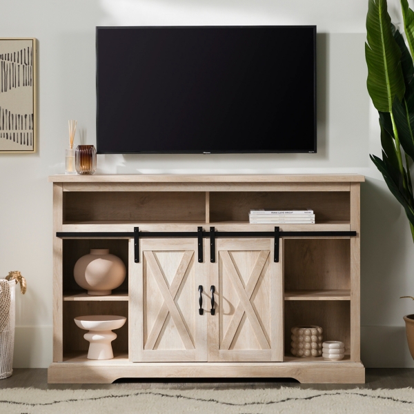 Highboy White Oak Barn Door Media Cabinet Kirklands