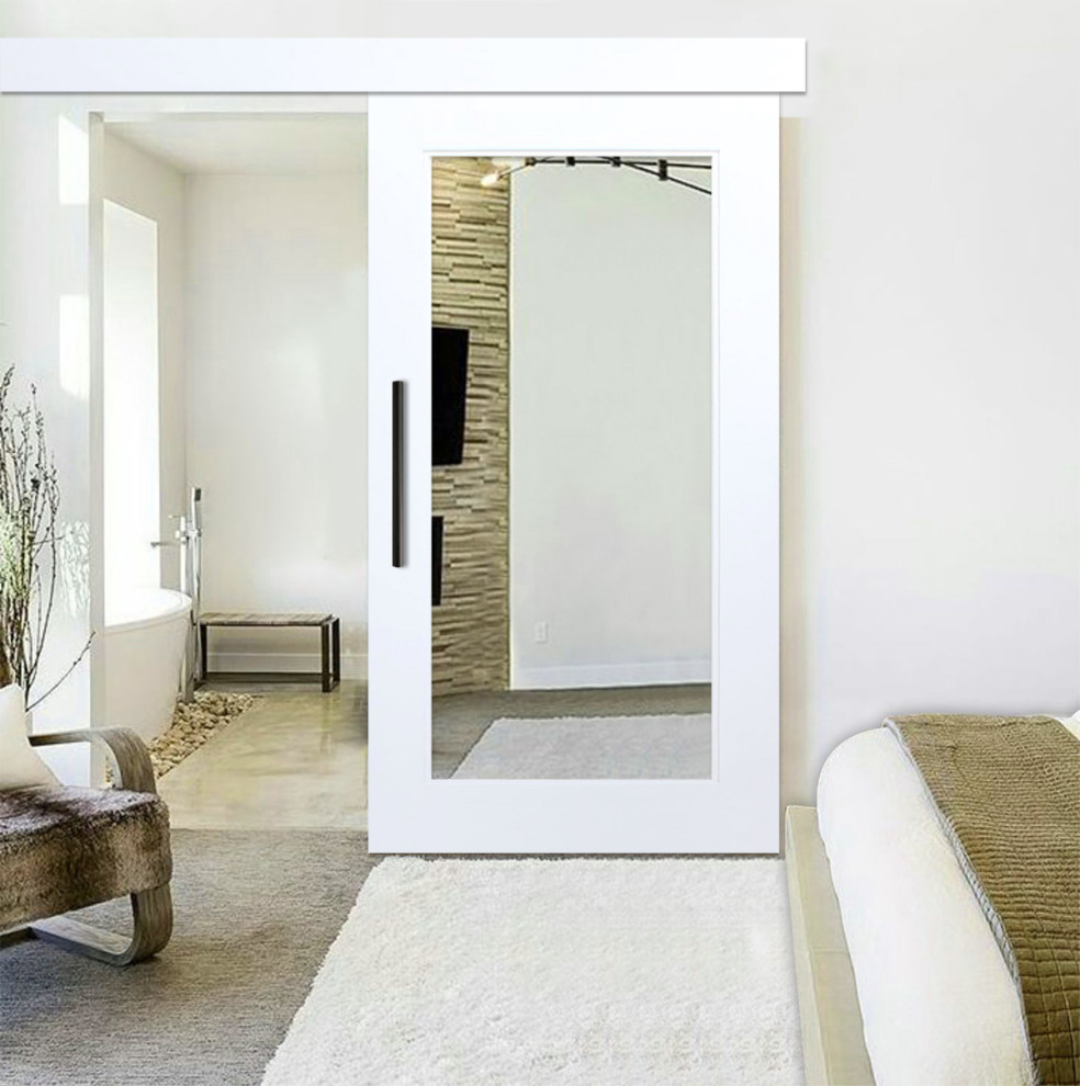 Mirrored Sliding Barn Door With Mirror Insert Hardware Kit