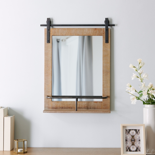 Firstime Co 25 In X 20 In Ingram Barn Door Mirror With Shelf