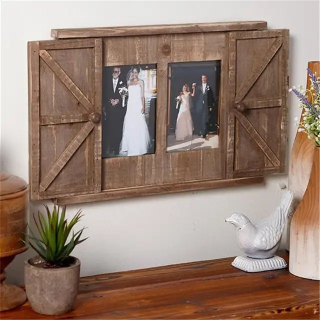Wall Art Wood Barn Door Picture Frame 2 Openings 5x7 Wood Rustic