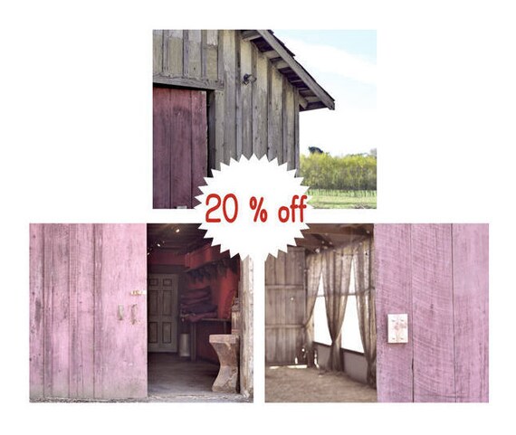 Pink Barn Art Modern Farmhouse Wall Art Set Of 3 Print Etsy