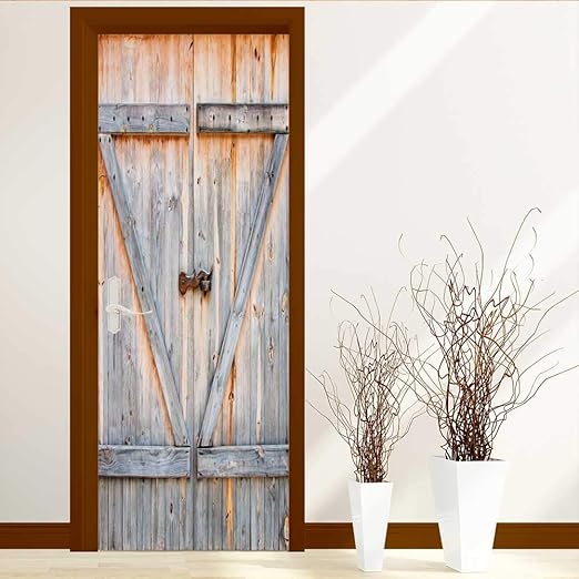 3d Wall Art Rustic Wood Barn Door Sticker Pvc Decal Self Adhesive