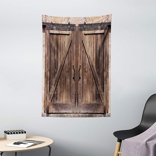 Amazon Com Ambesonne Rustic Tapestry Wooden Barn Door In Stone