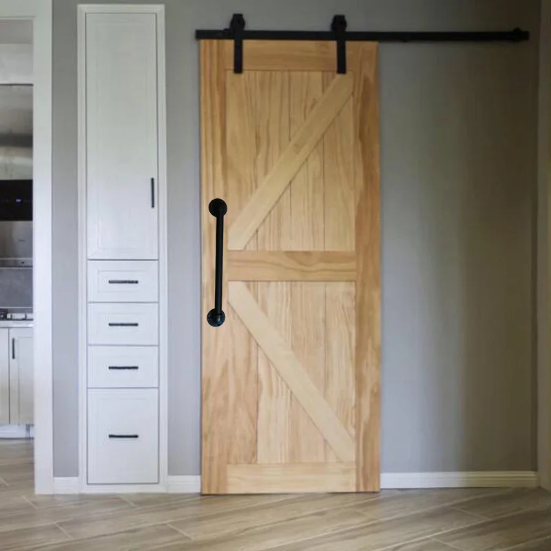 White Barn Door Pantry With Natural Wood Horseshoe Floating