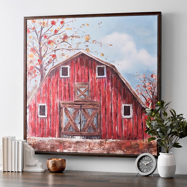 Late Fall Barn Framed Hand Painted Canvas Art 47 W X 35 H