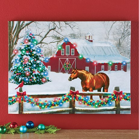 Holiday Lighted Barn Canvas Wall Art Collections Etc