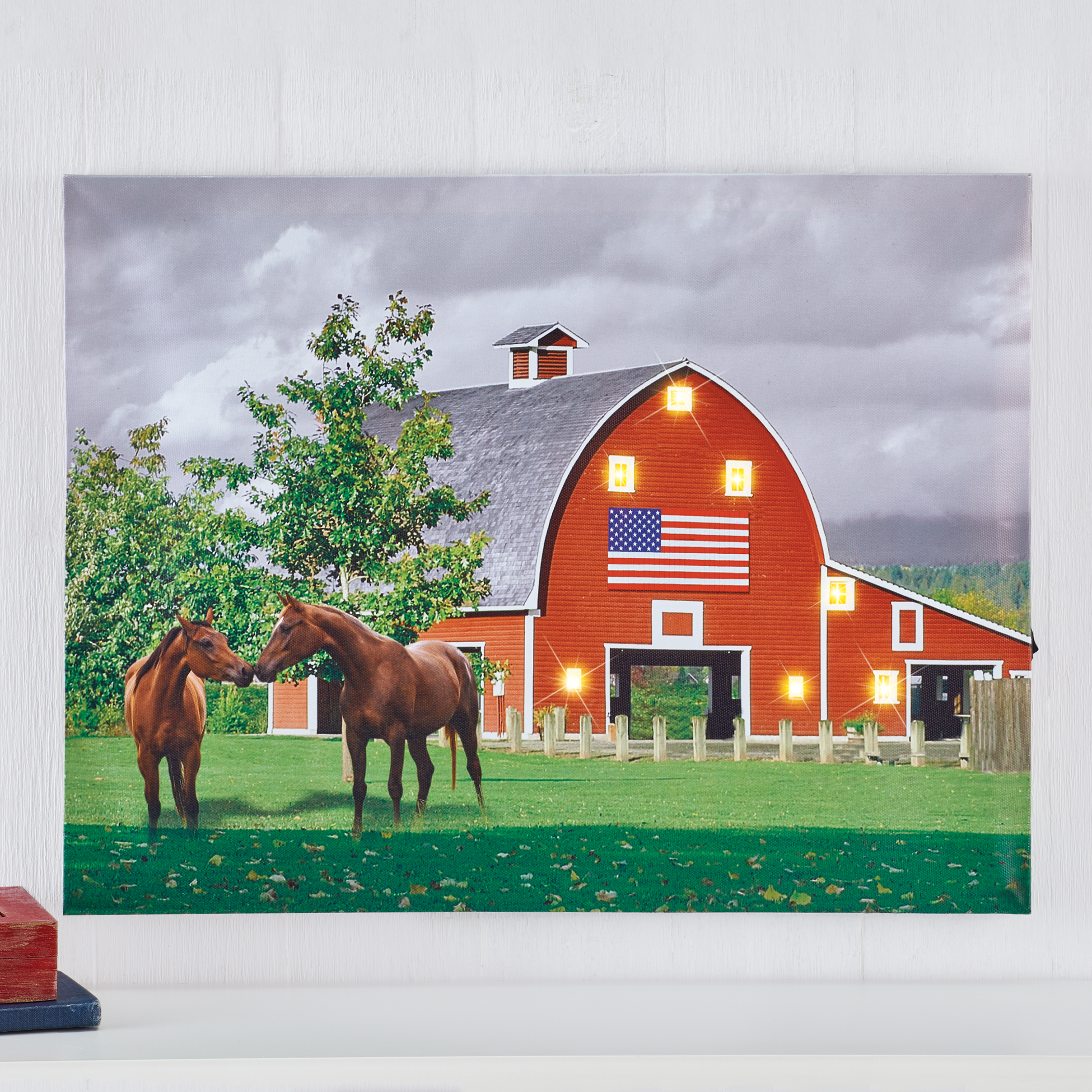 Lighted Rustic Patriotic Barn Canvas Wall Art Collections Etc