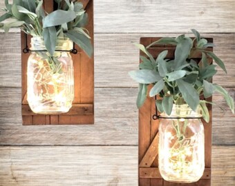 Mason Jar Wall Sconce Set Rustic Wall Decor Mason Jar Sconces