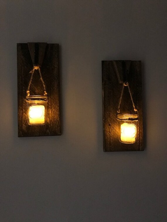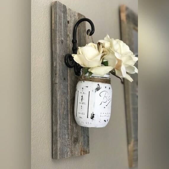 Mason Jar Scones Rustic Wall Sconces Barnwood Decor Etsy