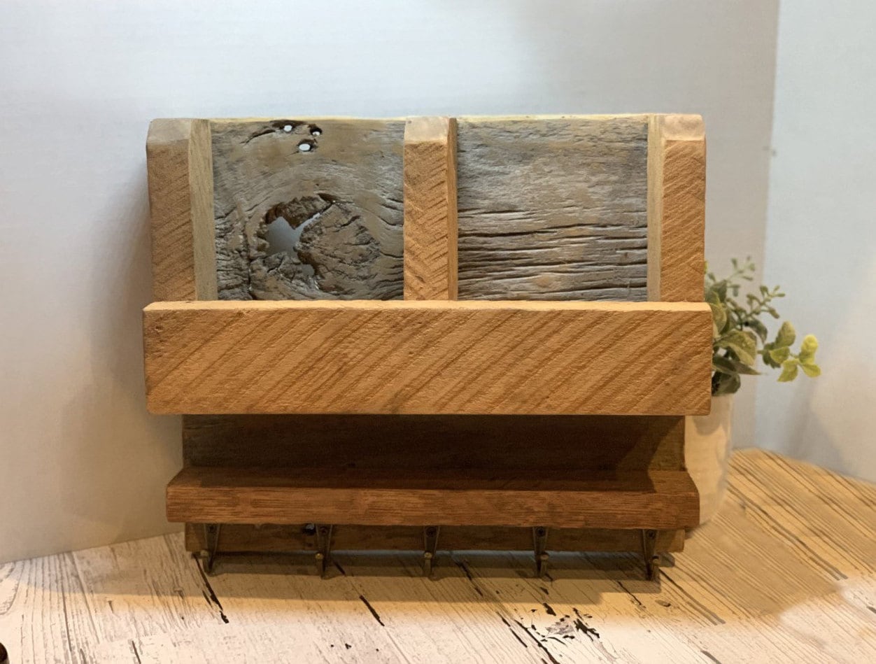Barnwood Mail Holder With Cubbies A Shelf And Hooks From Etsy