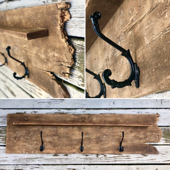 Original Barnwood Shelf With Hooks Etsy