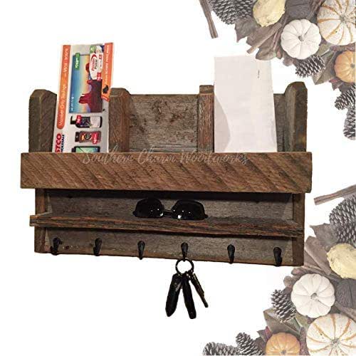 Amazon Com Barnwood Mail Holder With Cubbies A Shelf And Hooks Rustic Home Decor Handmade