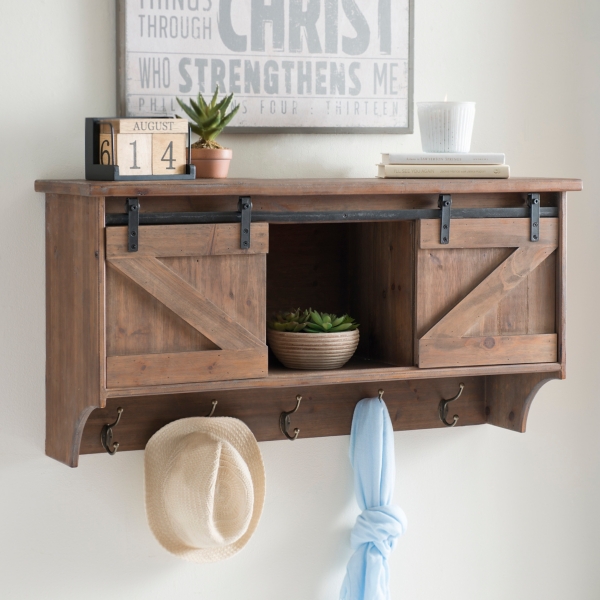 Barnwood Door Wall Shelf With Hooks Kirklands