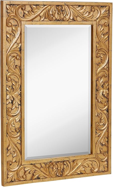 Amazon Com Hamilton Hills Large Gold Antique Inlay Baroque Styled Framed Mirror Aged Elegant Rectangular Glass Wall Mirror Vanity Bedroom Or Bathroom Hangs Horizontal Or Vertical 24 X 35