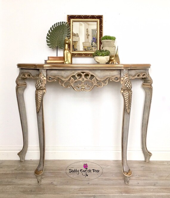 Elegant Hand Painted Baroque Style Console Table Grey And Etsy