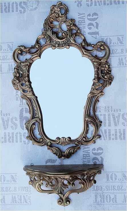 Baroque Wall Mirror With Shelf And Candle Holders Bathroom