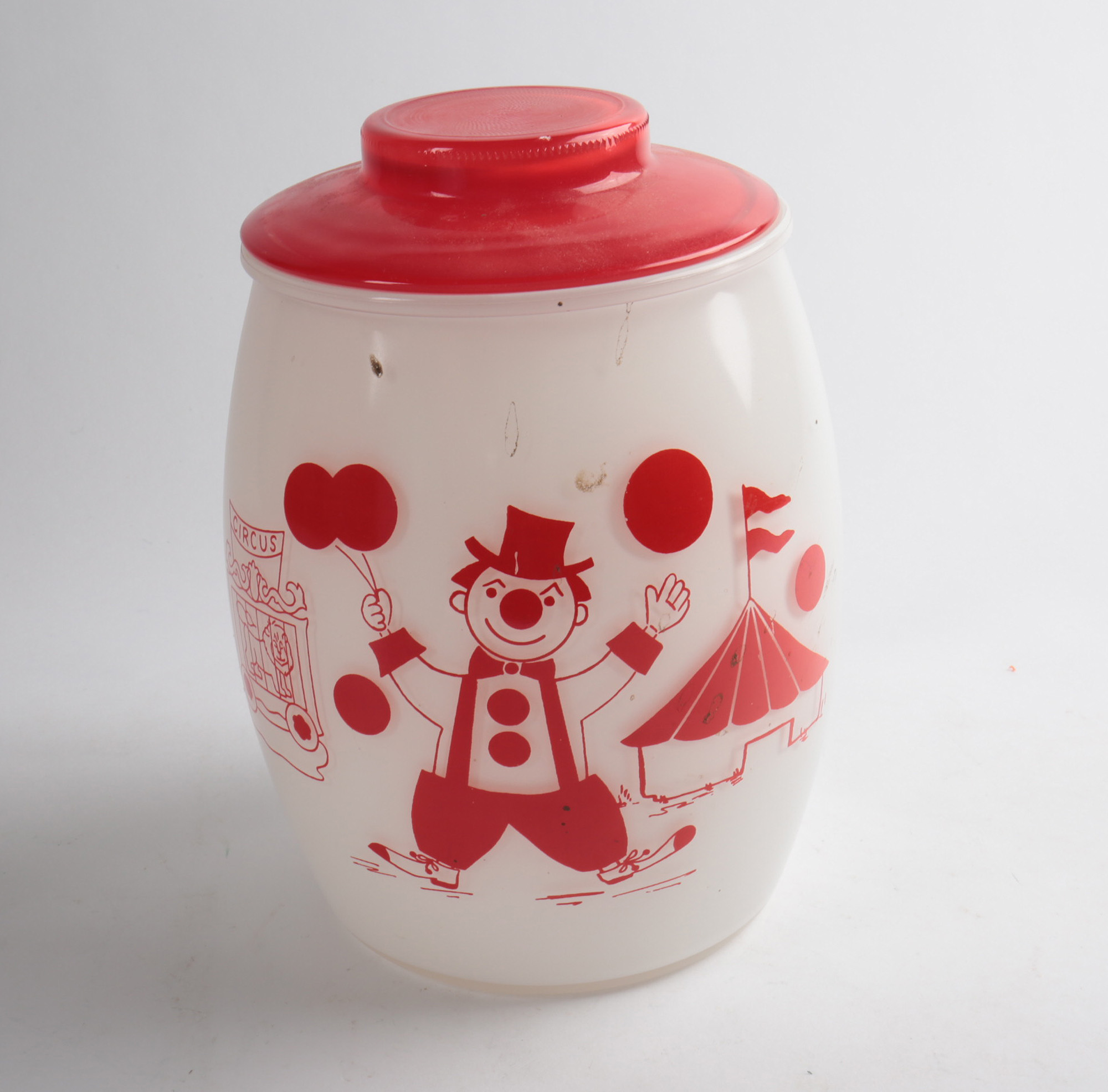 Vintage Bartlett Collins Circus Red And White Milk Glass Cookie