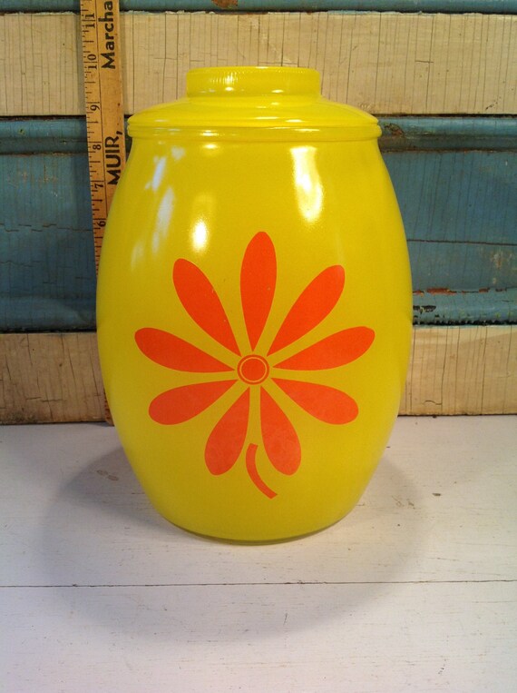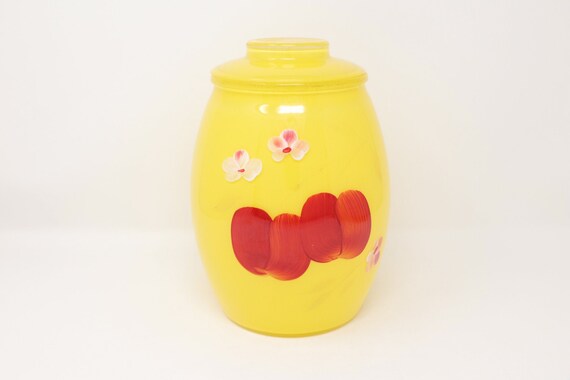 Bartlett Collins Yellow Glass Cookie Jar With Flowers And Red Etsy