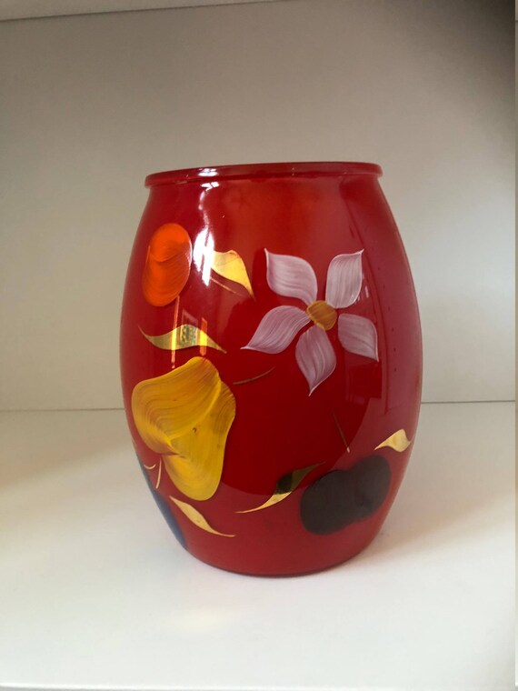 Vintage Mid Century Bartlett Collins Hand Painted Red Glass Cookie