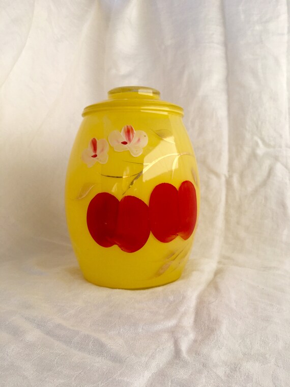 Bartlett Collins Yellow Glas Cookie Jar Red Apples Ith Blossom