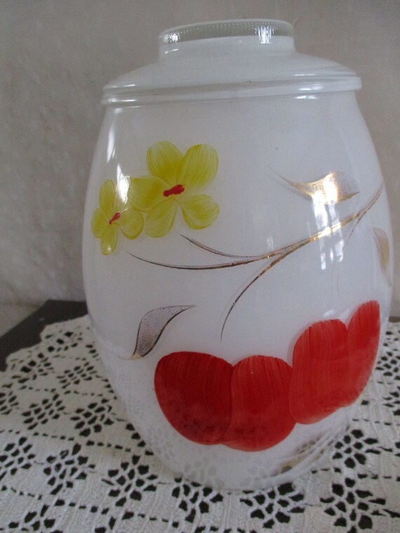 Bartlett Collins Glass Cookie Jar Red Apples White Bossoms Yellow