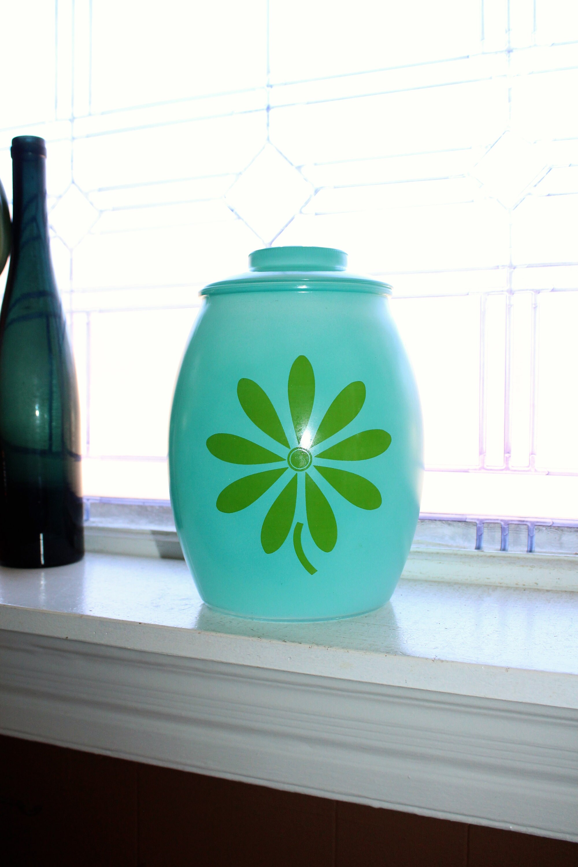 Vintage Bartlett Collins Flower Power Turquoise Cookie Jar