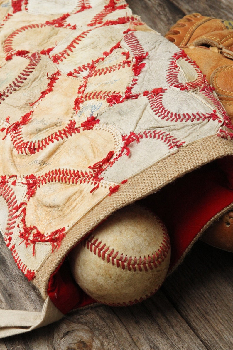 Baseball Christmas Stocking Burlap Natural And Red Etsy