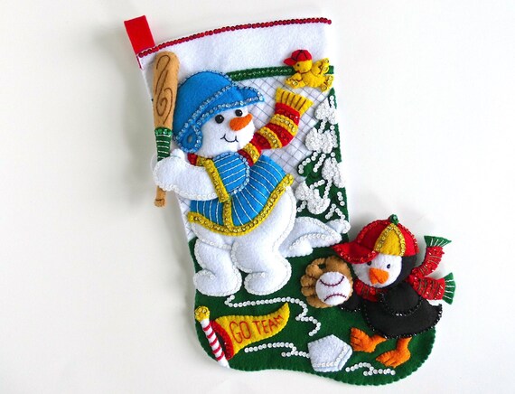 Bucilla Christmas Stocking Finished Baseball Snowman Etsy
