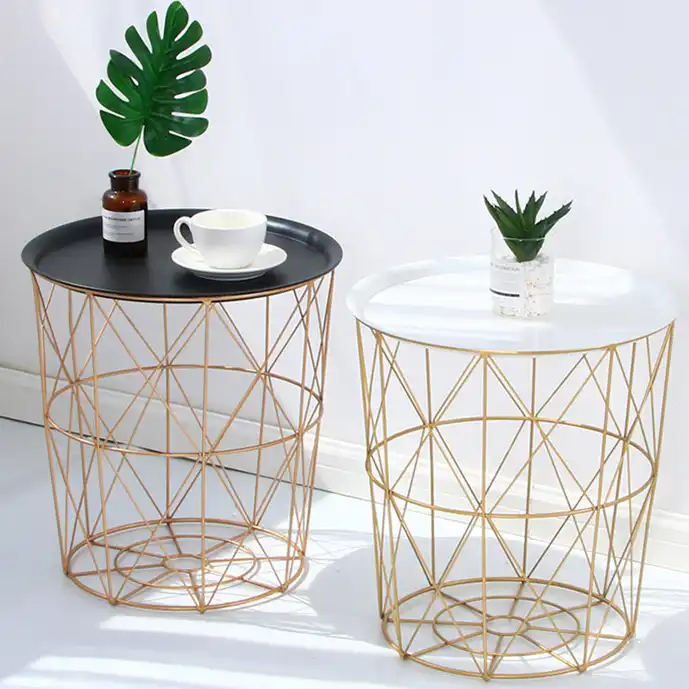 Creative Nordic Golden Iron Metal Coffee Table Dirty Storage