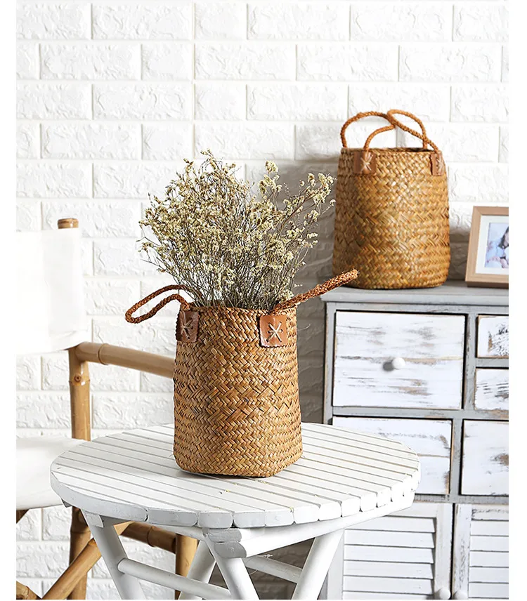 Handmade Sea Straw Hand Basket Storage Basket Weave Bag Flowerpot