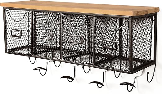 Industrial Style Wall Organizer With Basket And Shelves 33in Wide