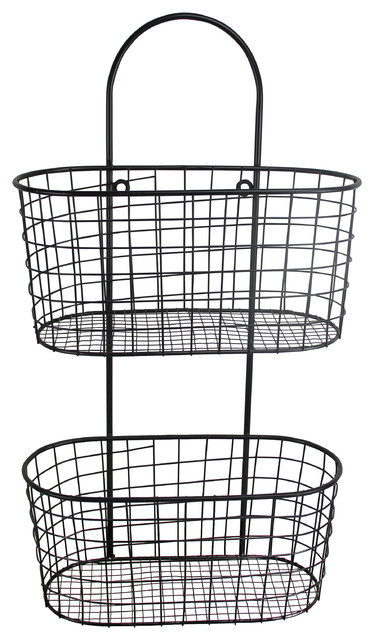 Hanging Double Wire Basket Organizer Wall Mount Storage Rustic