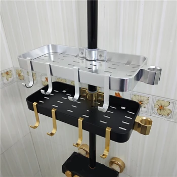 Gold Space Aluminum Shower Basket With Hooks Wall Mount Shower Rod
