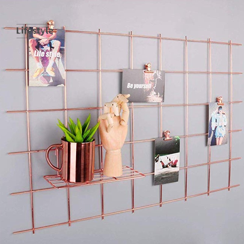 Jual 3 Pcs Rose Gold Grid Basket With Hooks Bookshelf Display