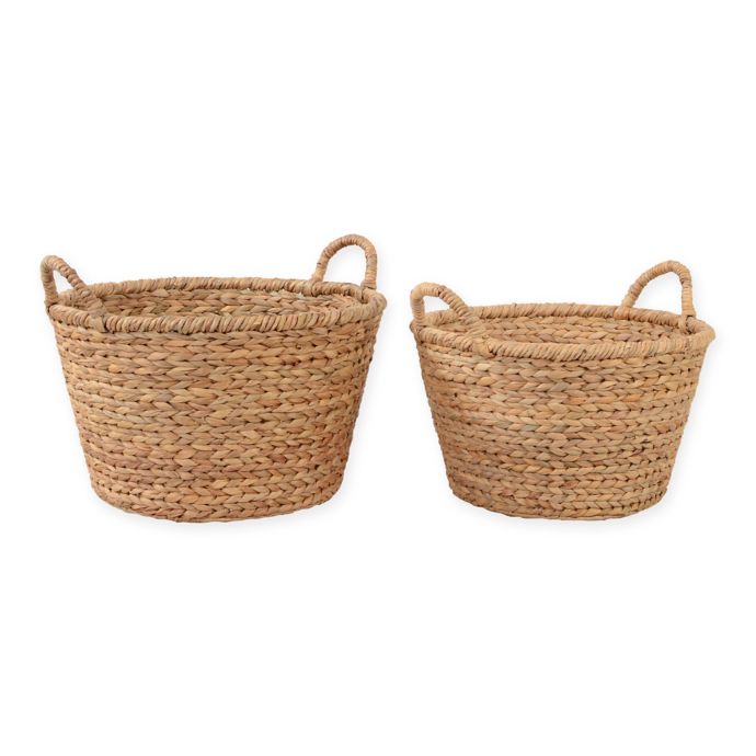 Omi Set Of 2 Natural Hand Woven Round Water Hyacinth Baskets With