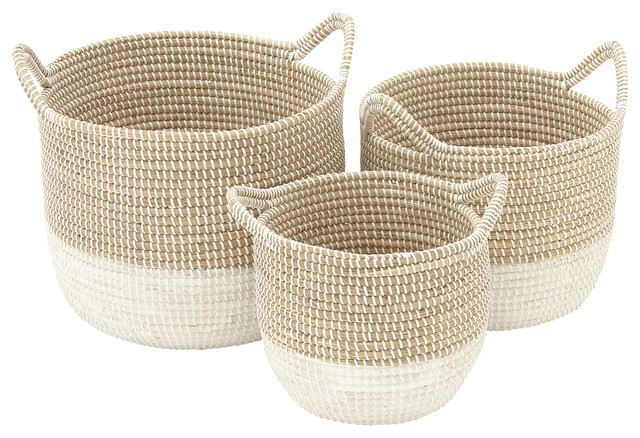 White Seagrass Baskets With Handles Set Of 3 18 X15 16 X13