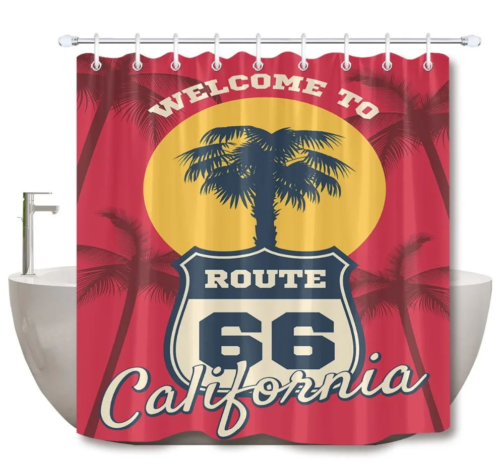 Bathroom Home Decor Us Route 66 Sign Shower Curtain Waterproof