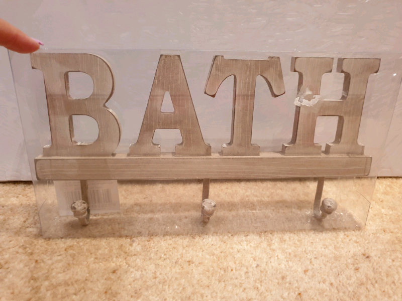Metal Bath Sign With 3 Hooks Ebay