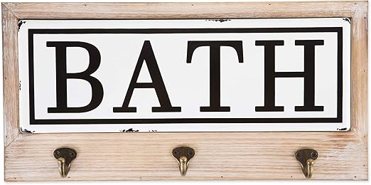 Metal And Wood Bath Sign With Hooks Kirklands
