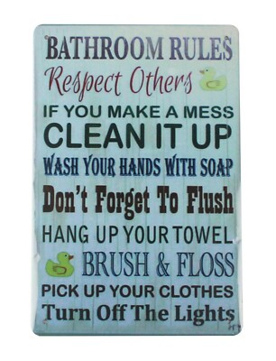 Bathroom Rules Tin Metal Sign Contemporary Metal Wall Art Ebay
