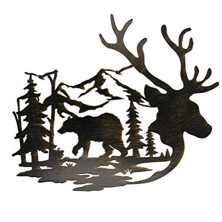 Juegoal Metal Wall Art Deer Bear In The Forest Pine Tree Wall