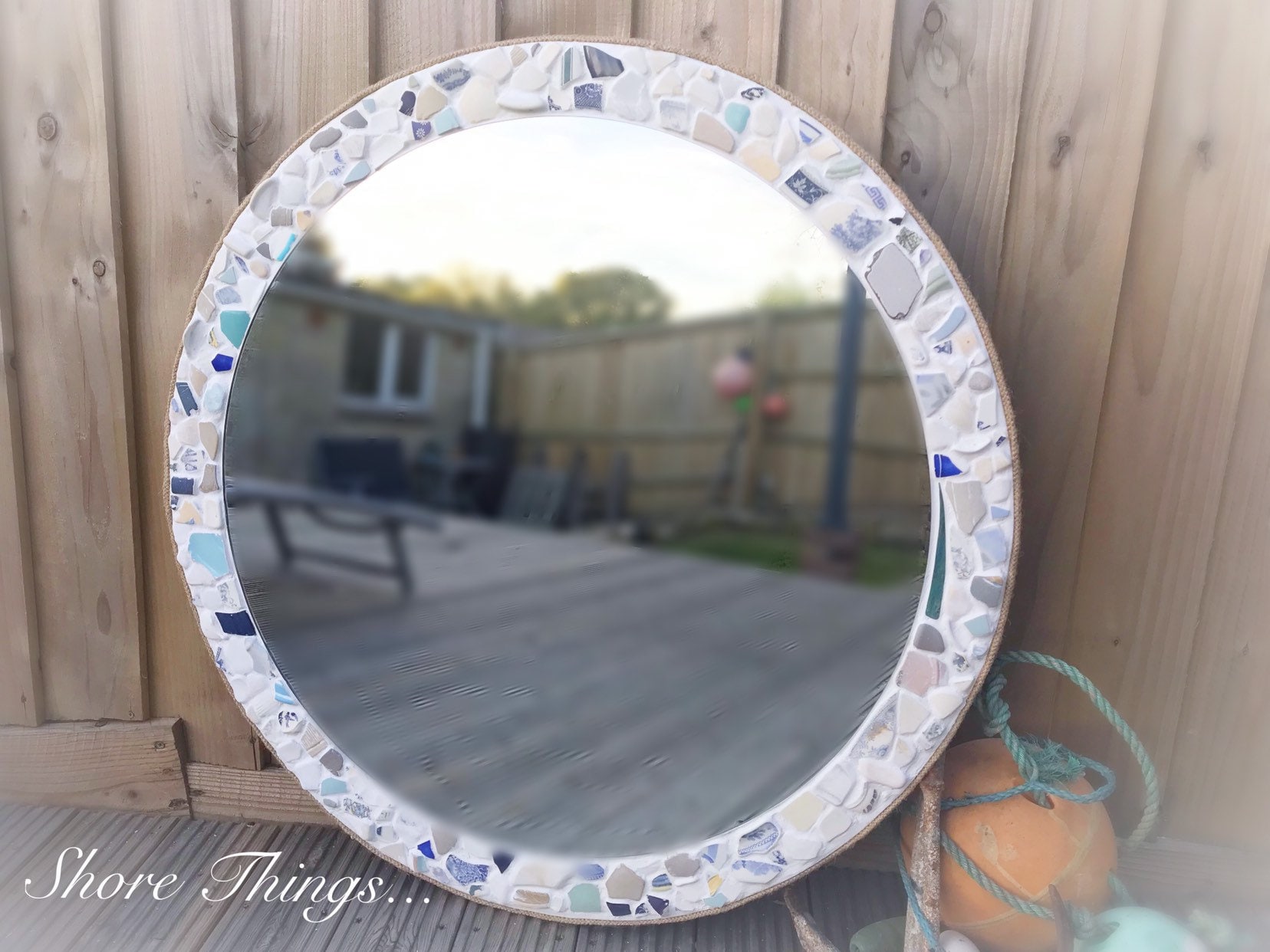 33 Round Blue And White Sea Pottery Mirror Bathroom Etsy